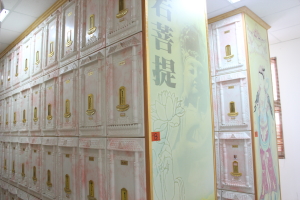 相簿說明:籃厝公墓為地上三層建築物,現場包含地藏王菩薩、土地公及各式納骨櫃設施。